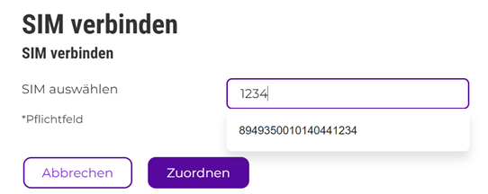Wenn Sie einen Enreach Contact Benutzer mit Mobilfunk bestellt haben und SIM Karte später verknüpfen ausgewählt haben, müssen Sie mit diesem Schritt fortfahren, um die Bestellung zu aktivieren.