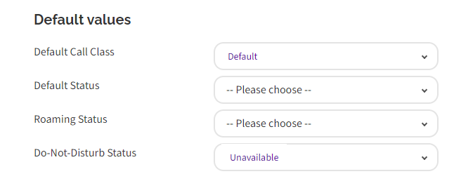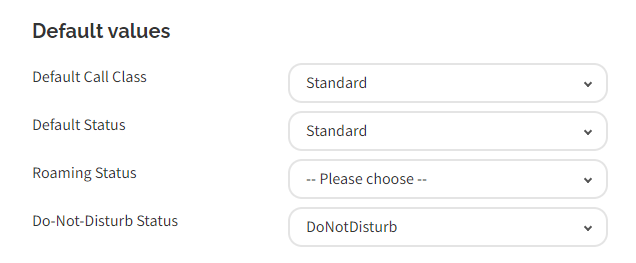 6 Under Default values - Default Call Class select the call class associated to the DND status and profile. This ensures that default this call class is applied for all incoming calls and when enabled DND will work for all calls.