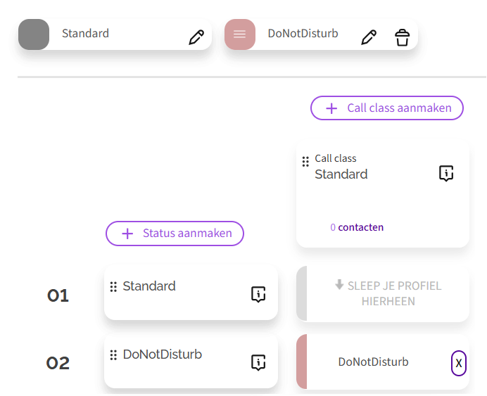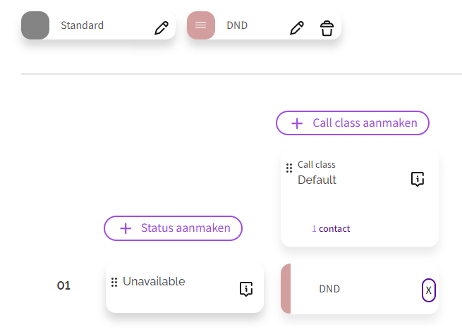 Zorg ervoor dat er minstens één status wordt aangemaakt met een gespreksklasse en een profiel toegewezen.
