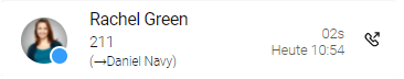 Beispiel: Rachel Green hat Sie angerufen. Sie haben eine Weiterleitung an Daniel Navy aktiviert. Der Anruf wird weitergeleitet. Daniel Navy hat den Anruf beantwortet :