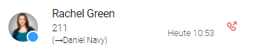 Beispiel: Rachel Green hat Sie angerufen. Sie haben eine Weiterleitung an Daniel Navy aktiviert. Der Anruf wird weitergeleitet. Daniel Navy hat den Anruf nicht beantwortet :