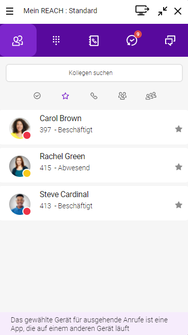 Nach jeder Anmeldung bei der remote Enreach Contact Desktop Instanz oder wenn Sie das Ausgangsgerät auf