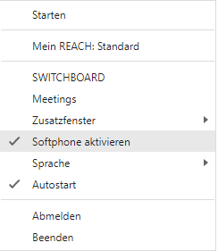 4 Deaktivieren Sie das Softphone auf der remote Enreach Contact Desktop Instanz. Sie können dies über das Kontextmenü in der Taskleiste tun und die Markierung Softphone aktivieren entfernen.