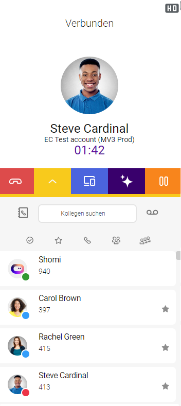Mit Enreach Contact Desktop können Sie einen eingehenden oder einen angenommenen Anruf problemlos an einen anderen Kontakt oder an ein anderes Ihrer Endgeräte übergeben.