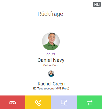 2 Klicken Sie auf Verbinden, um den Anruf ohne Rückfrage zu übergeben, oder klicken Sie auf Rückfrage, um eine Rückfrage zu starten.