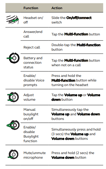 Sie können Funktionen von Headsets in Enreach Contact Desktop nutzen. Wenn Sie beispielsweise einen Anruf annehmen möchten, können Sie dies direkt von Ihrem Headset aus tun. Nachstehend finden Sie ein Beispiel dafür, was mit dem Jabra Evolve 65 und 75 möglich ist.