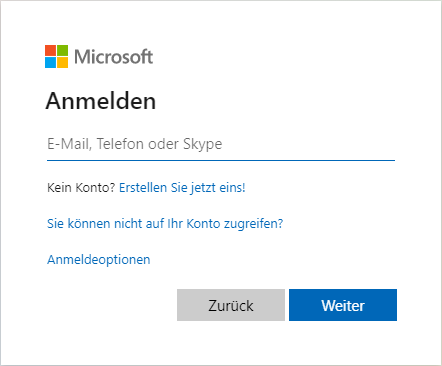 Um die Integration mit Microsoft zu aktivieren müssen Sie sich einmalig im Microsoft-Portal anmelden.