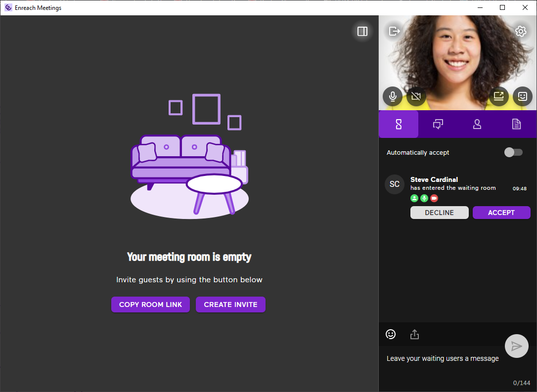 4 If the invited guest has accepted the Enreach Meetings invitation, you will receive a notification.