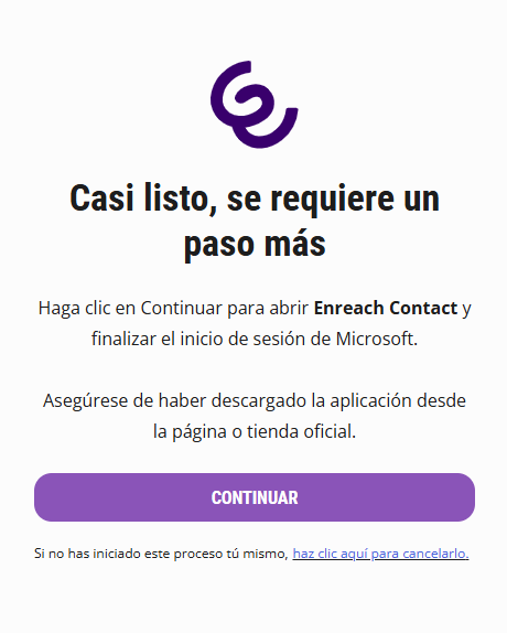 Estás iniciando sesión en aplicativo de Enreach Contact para escritorio.