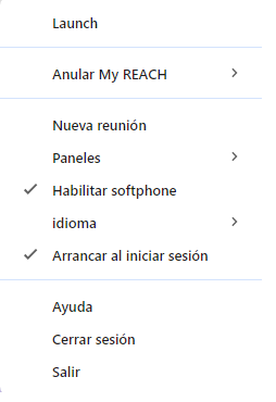 4 Desactive el softphone en su instancia remota del aplicativo de Enreach Contact para escritorio. Puede hacerlo a través del menú y desmarcar Activar Softphone.