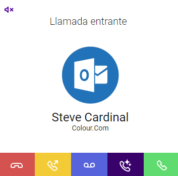 Si recibes una llamada, si desvías una llamada o si recibes una llamada de un grupo del que eres miembro, aparece una ventana emergente de Llamada entrante con la información de contacto de la persona que llama.