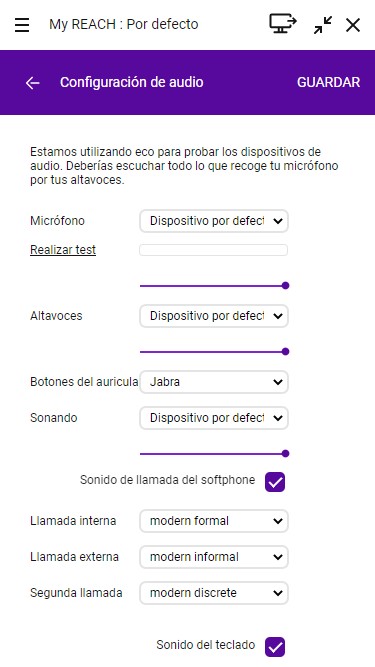 Debes seleccionar el dispositivo preferido en la configuración de audio en Enreach Contact Desktop. Es obligatorio para el control de los auriculares. La selección Dispositivo por defecto no permitirá la integración de auriculares.