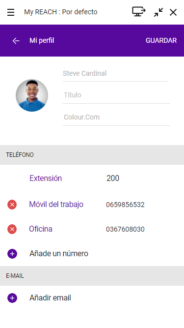 Tu perfil contiene información específica del usuario. Puedes cambiar tu foto de perfil, tu cargo y añadir números de teléfono o direcciones de correo electrónico.