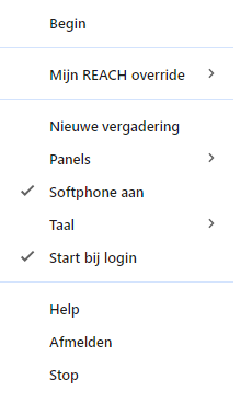 4 Schakel de softphone op je remote Enreach Contact Desktop instantie uit. Je kunt dit doen via het contextmenu in de lade en het vinkje weghalen bij Softphone aan.