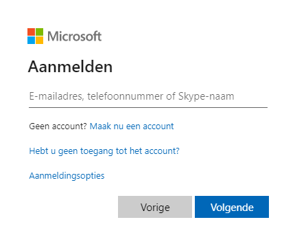 Om de integratie met Microsoft te activeren, moet je eenmalig inloggen op het Microsoft-portaal.