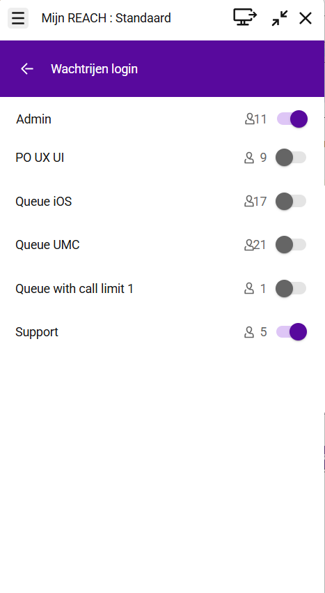 Om beter inzicht te geven in wanneer gebruikers zich bij een wachtrij moeten aan- of afmelden, wordt in het gedeelte voor wachtrij-aanmelding nu het aantal momenteel aangemelde agenten weergegeven.