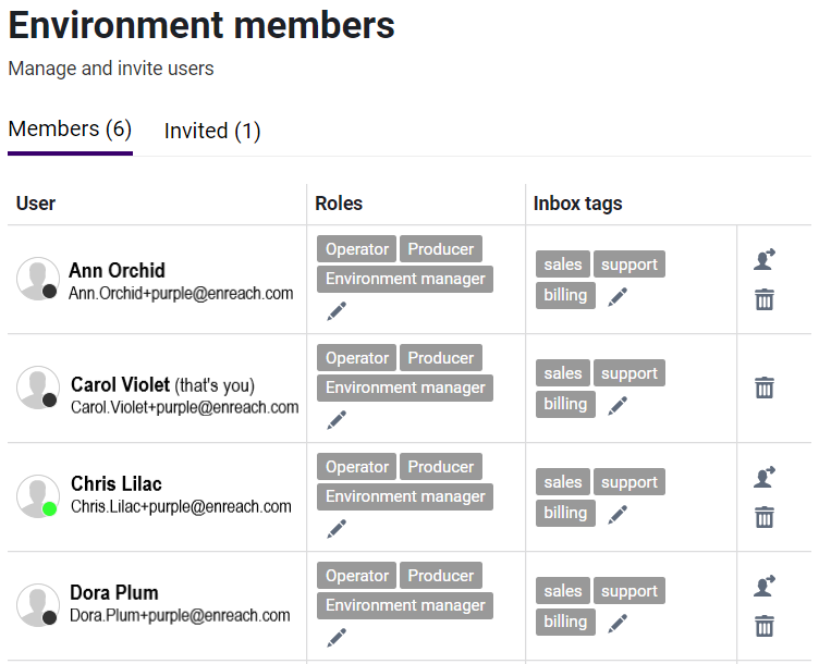 Environment member erscheint und alle Benutzer der Umgebung werden angezeigt.