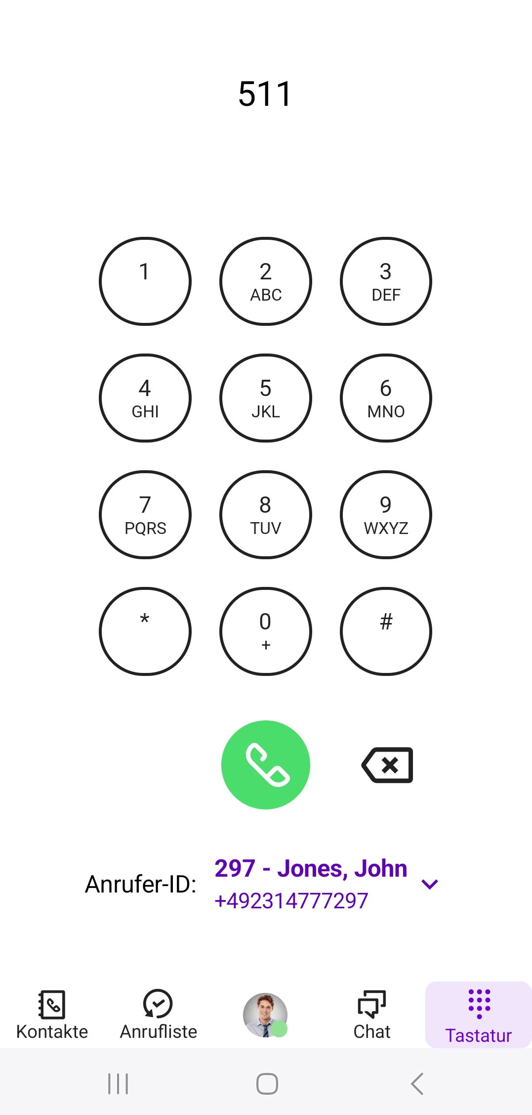 Über das Icon steht Ihnen ein Ziffernblock zur Verfügung, den Sie wie bei einem normalen Telefon zur Direkteingabe von Telefonnummern verwenden können. Sie können Telefonnummern sowie DTMF-Zeichen natürlich auch aus anderen Anwendungen kopieren und in das Eingabefeld oberhalb der Tastatur einfügen. Siehe auch So starten und beenden Sie einen Anruf über die Tastatur.