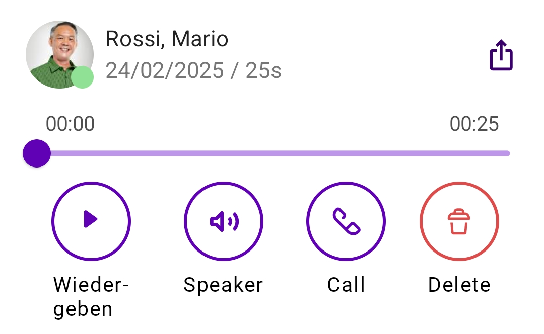 Neben dem Abspielen der Voicemail haben Sie folgende Optionen:
