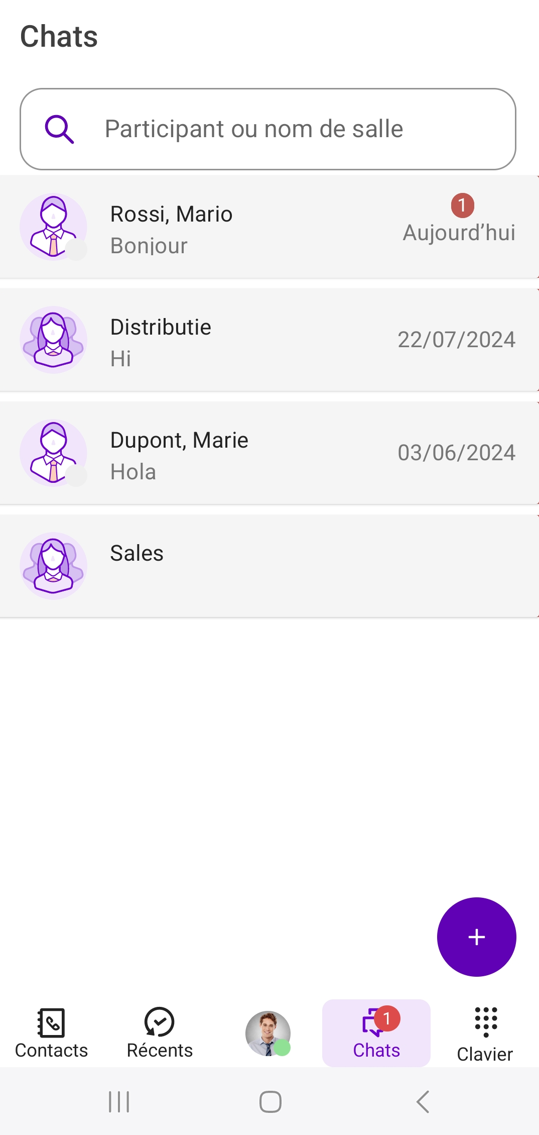 Chats, vous pouvez envoyer des messages texte à un ou plusieurs participants. Voir également la section