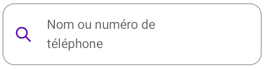Le champ de recherche de contact est situé au-dessus de la liste des contacts. Balayez vers le bas depuis la liste de contacts si le champ de recherche n'est pas encore visible. Vous pouvez y saisir un nom ou un prénom ainsi qu'un numéro de téléphone pour effectuer une recherche dans vos contacts.