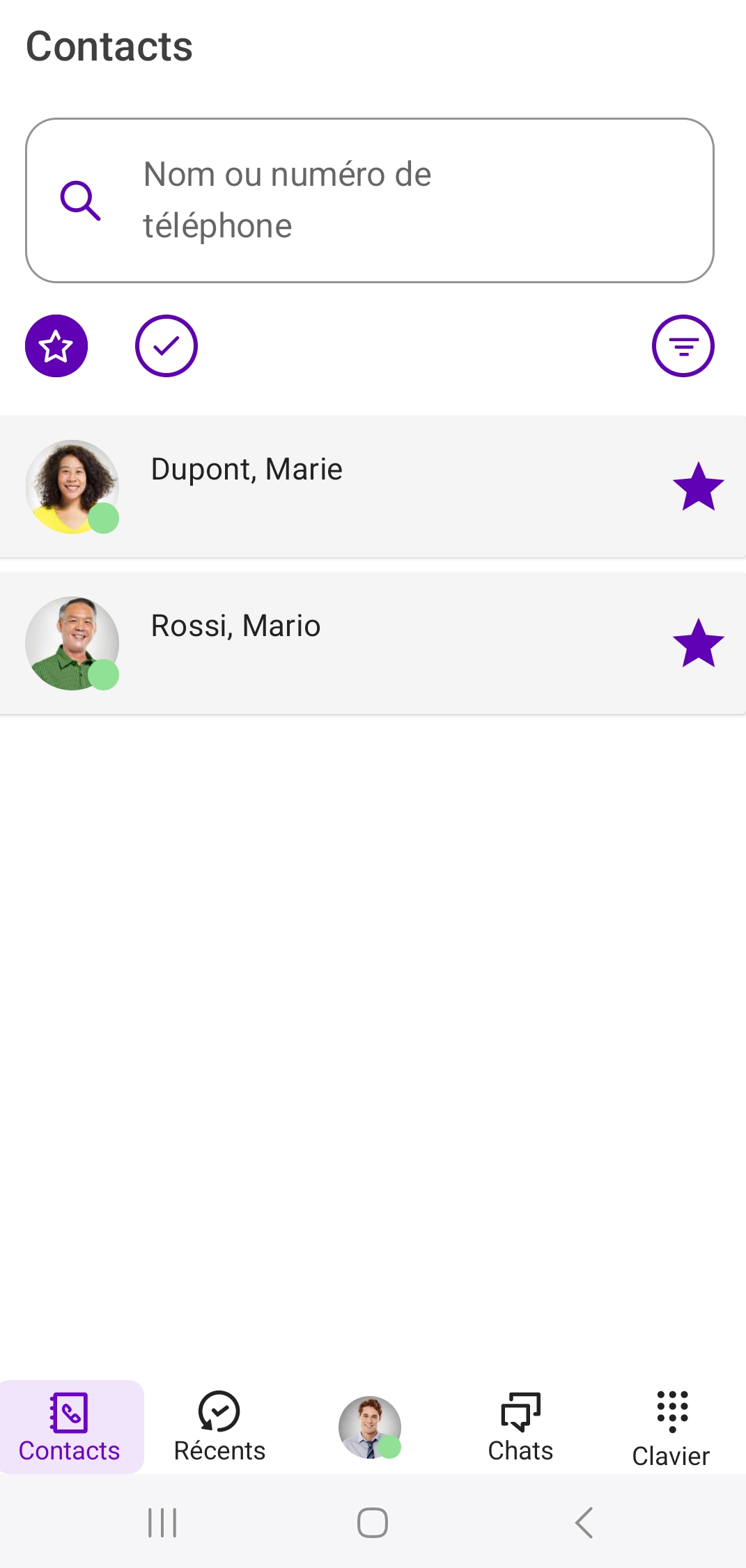 Vous pouvez sélectionner les sources de contact à afficher dans votre liste de contacts.