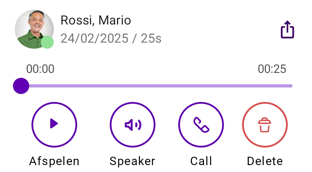 Behalve het afspelen van de voicemail, heb je de volgende mogelijkheden: