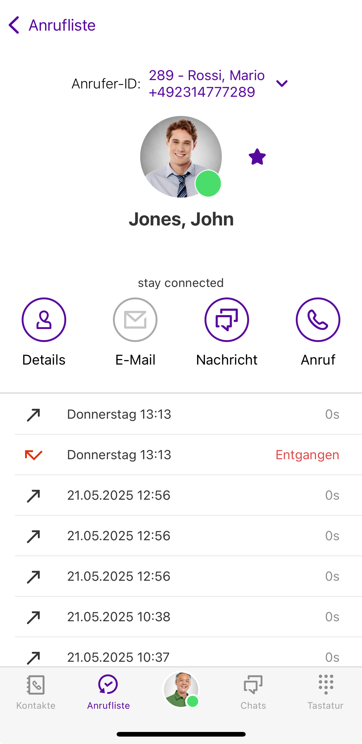 Eine Übersicht der einzelnen Anrufe mit diesem Kontakt wird angezeigt.