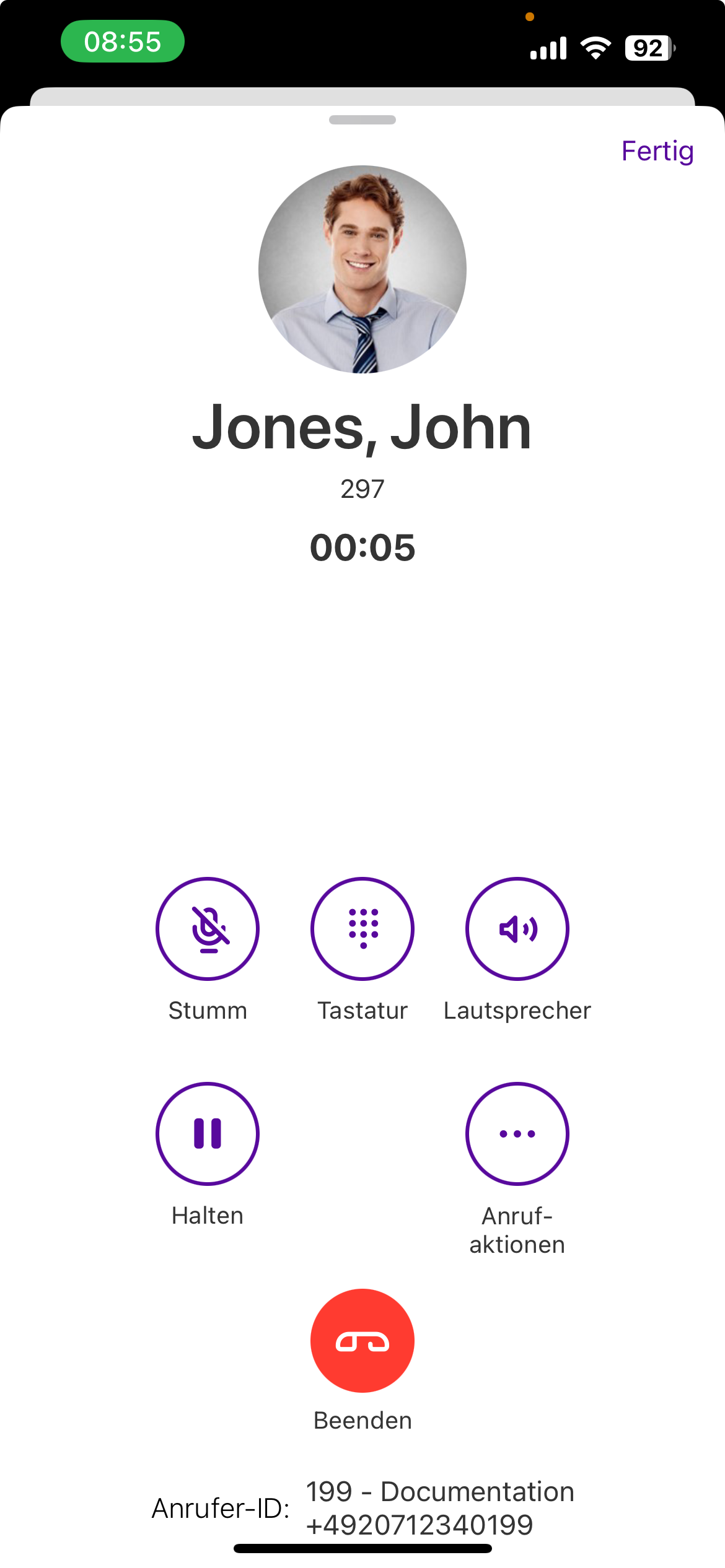 3 Nehmen Sie den Anruf am gewünschten Endgerät (z. B. SwyxIt!) entgegen und führen Sie das Gespräch fort.