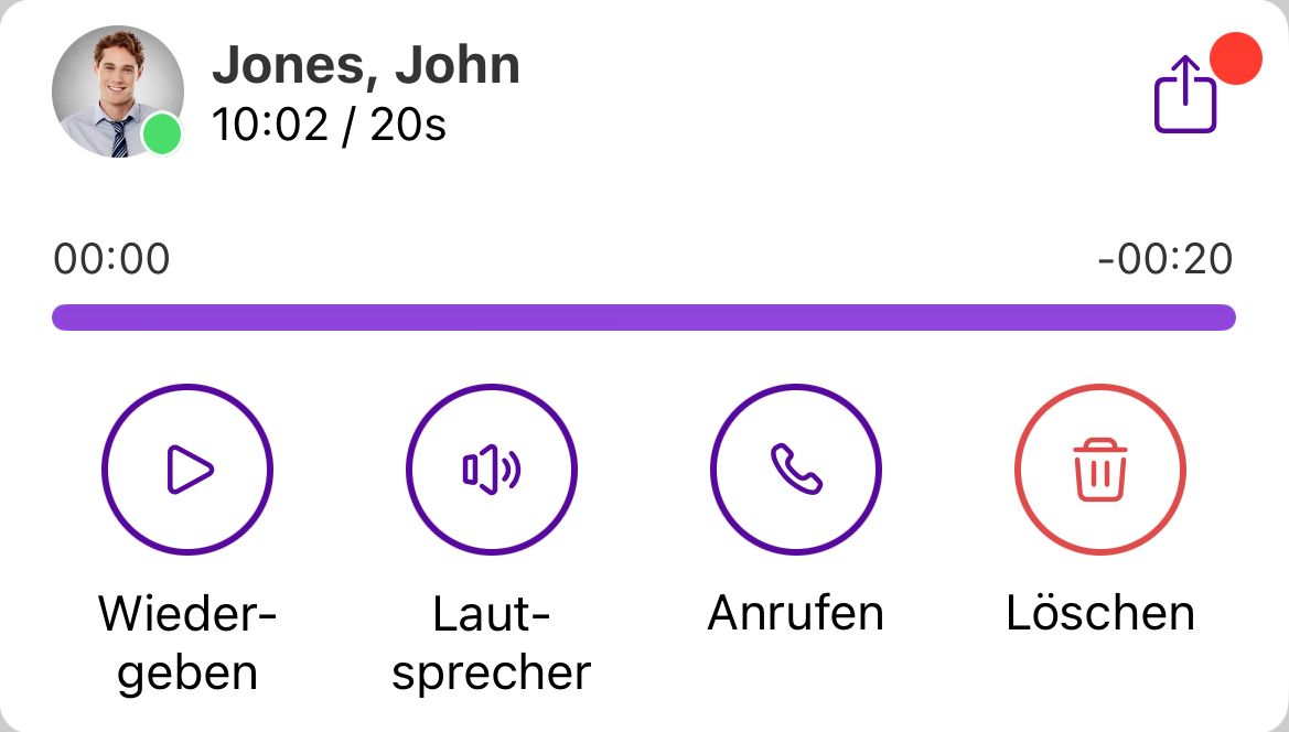 Neben dem Abspielen der Voicemail haben Sie folgende Optionen: