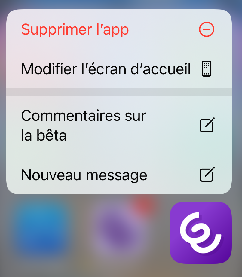 1 Touchez longuement l'icône de l'application sur l'écran d'accueil.