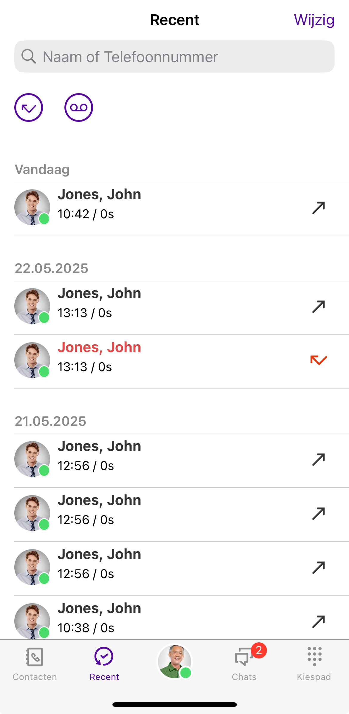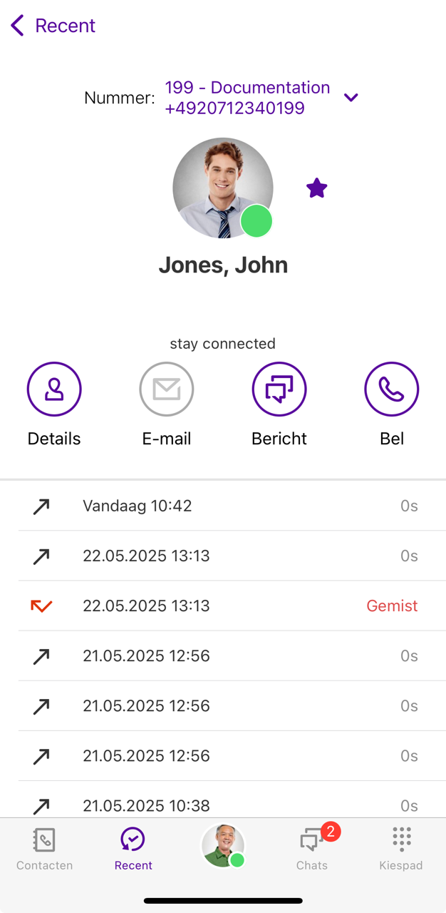 In de Recent worden alle ontvangen en gevoerde gesprekken chronologisch opgesomd.
