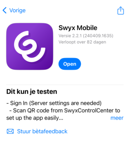 2 Tik op de volgende link op jouw iPhone om deel te nemen aan de Swyx Mobile beta.