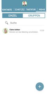 Im Menü Chat können Sie Textnachrichten mit einem oder mehreren Teilnehmern austauschen. Siehe auch Chat.