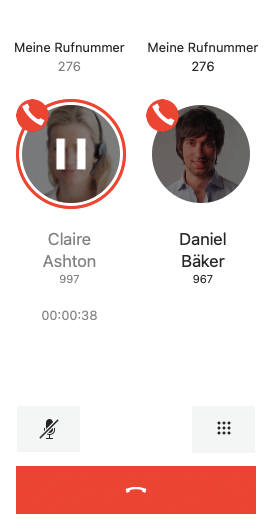 Sowohl das aktive als auch das gehaltene Gespräch werden zu einer Konferenz zusammengeschaltet.