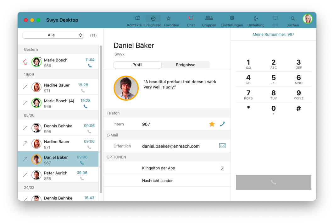 Beachten Sie bei der Speicherung und Verarbeitung von personenbezogenen Daten die jeweils anwendbaren gesetzlichen Datenschutzbestimmungen. Bei Fragen zum Thema Datenschutz in SwyxWare wenden Sie sich an Ihren Administrator.
