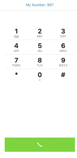 The right side of the window features a dial pad you can use to enter a normal phone number directly, just like a conventional phone. The entered phone number is displayed in the search field.