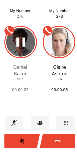 With Swyx Desktop for macOS, you can easily start a conference call with other parties. To do so, you have to be connected to two call partners at the same time.