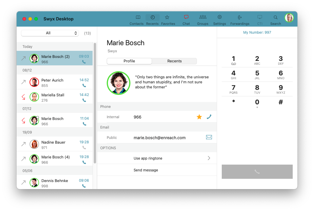 When saving and processing personal data, observe the respective applicable legal data protection regulations. If you have any questions in particular concerning data protection regulations in SwyxWare, please contact your administrator.