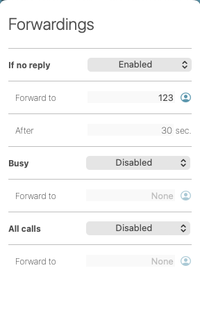 If you enable call forwarding for the If no reply option, you can also specify, when the call forwarding should come into effect.