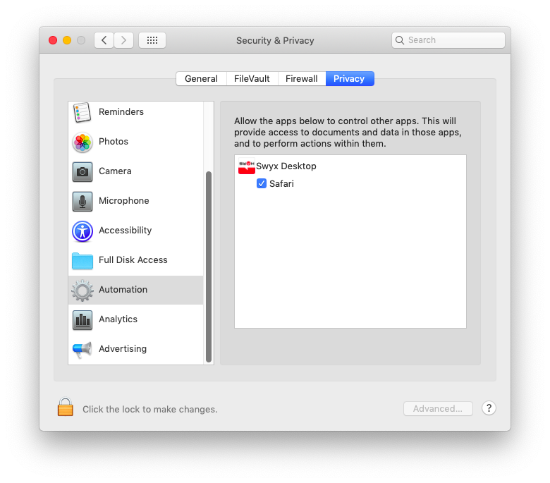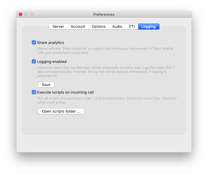 To enable the use of scripts in Swyx Desktop for macOS