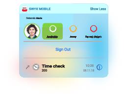 This option allows you to sign out from Swyx Mobile. In addition to the sign out function within the settings, this is a further logout function, not a status. See also Sign out from Swyx Mobile for iOS