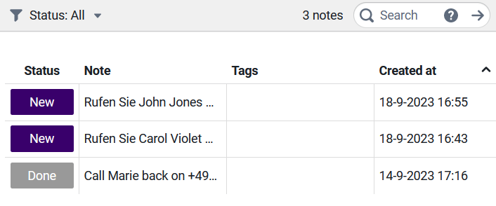 Mit einem Klick auf das Dropdown-Menü neben können Sie die Notizen nach ihrem Bearbeitungsstatus filtern.