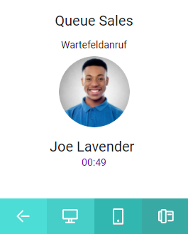 | Der Anrufbildschirm bleibt im mittleren Teil der SWITCHBOARD Oberfläche sichtbar, auch wenn Sie das Gespräch über ein anderes Endgerät führen. Sie können über die SWITCHBOARD Oberfläche den Anruf weiterhin Beenden, Parken, Weiterleiten, auf Halten legen und das Endgerät wechseln. |