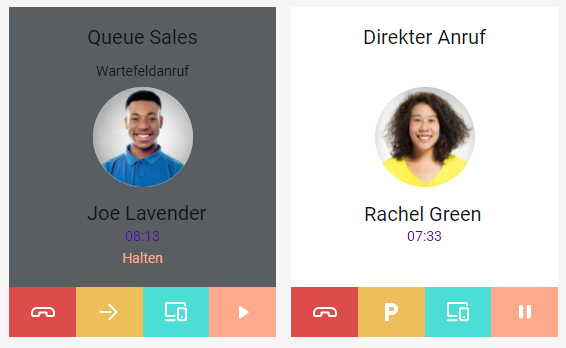 Eingehende Anrufe werden direkt oder über ein Wartefeld signalisiert und auf der SWITCHBOARD Oberfläche angezeigt.