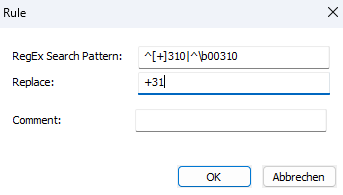 Unter MakeCall Rules können Sie Regeln hinzufügen, die das Format der Telefonnummern beim Wählen ändern. Dies kann nützlich sein, wenn Ihre App z. B. Telefonnummern in einem anderen Format speichert und wählt, als Sie es wünschen. Sie können