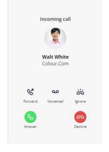 When you receive an incoming call, you have several options. You can accept the call, forward it to another destination, such as a colleague or your voicemail, or reject it.