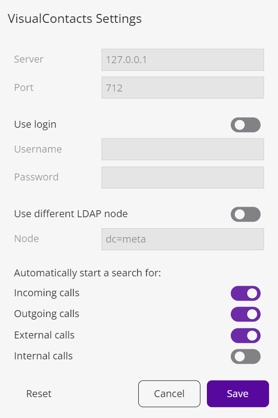 In the settings you can define for which types of calls the automatic search should be started. For a type of call for which the automatic search has been set, the entries found for the corresponding caller are automatically displayed on the Swyx VisualContacts interface in the Swyx Connector for Microsoft Teams.