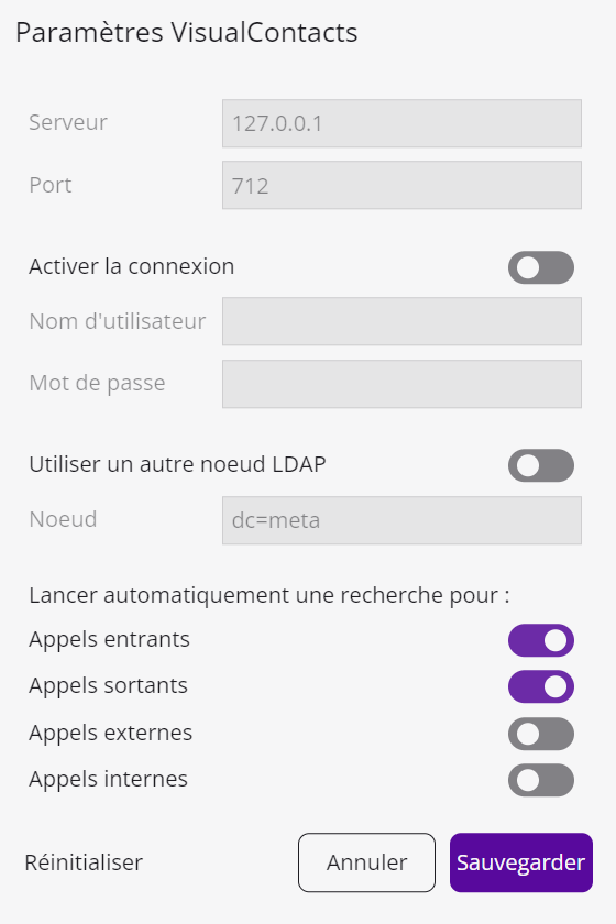 4 Cochez la case correspondant aux types d'appels pour lesquels vous souhaitez activer la recherche automatique.