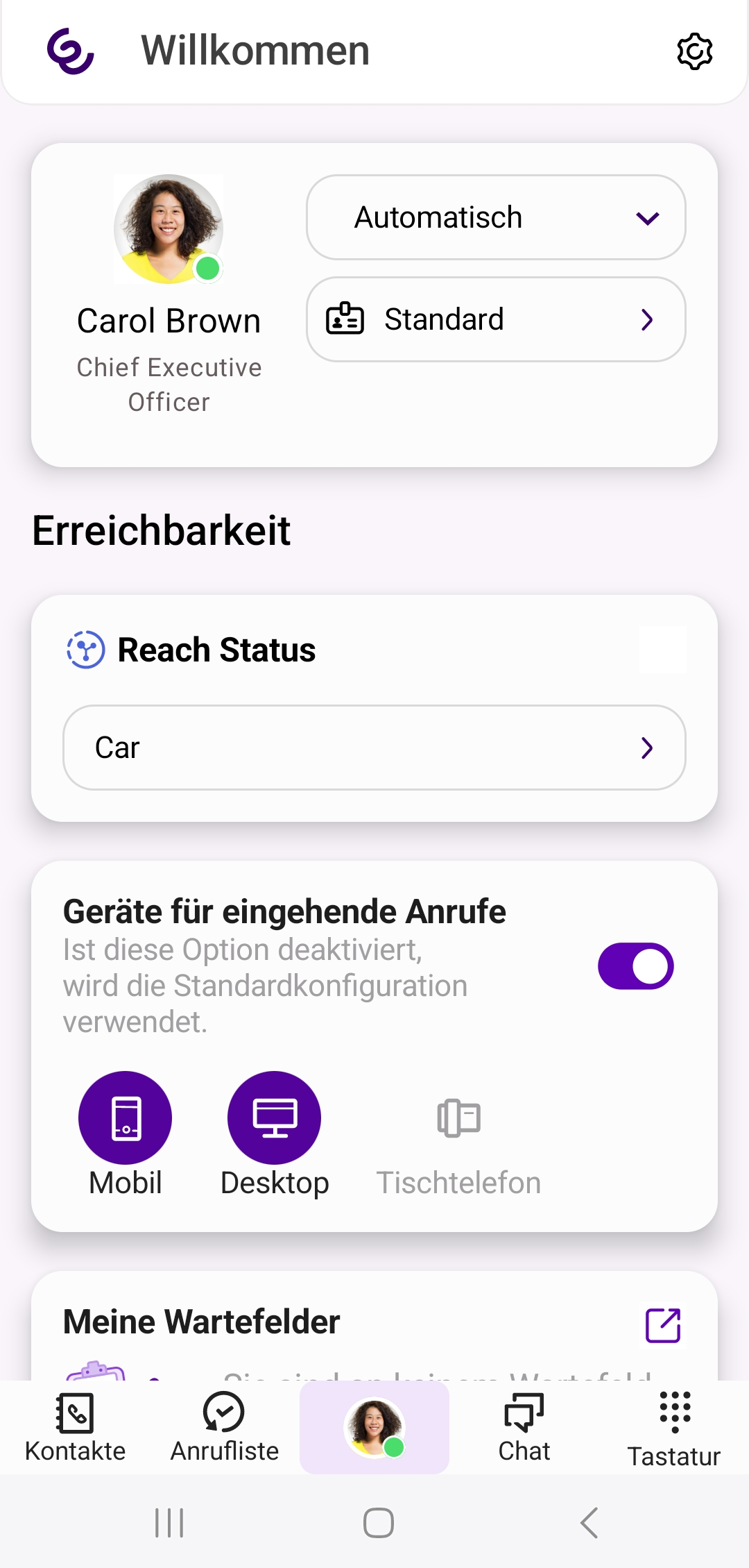 Erreichbarkeit auf einen Blick, welches Endgerät Sie für eingehende Anrufe konfiguriert haben. Unter